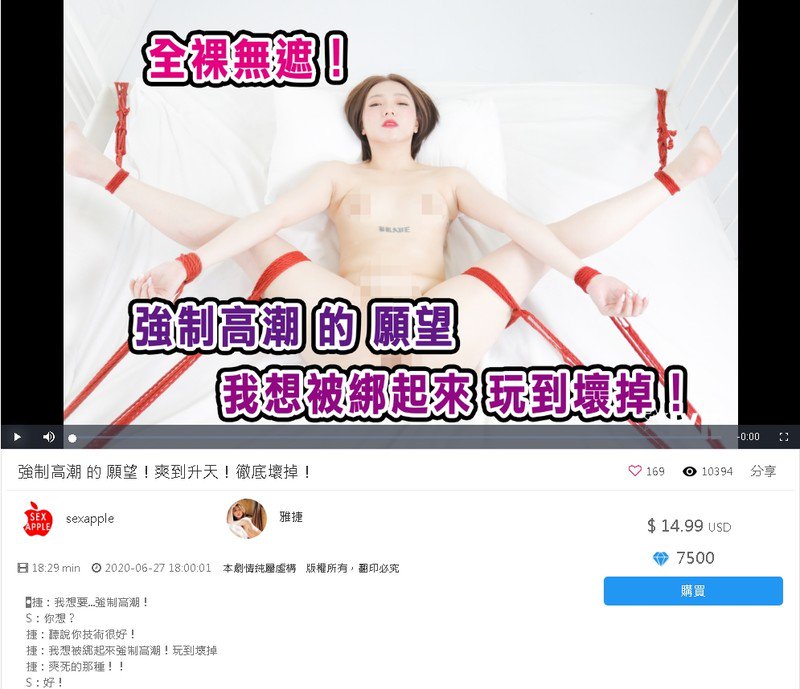 【影片名称】:雅捷-听说你技术很好!我想被绑起来强制高潮!玩到坏掉!爽死的那种! 1V 173P 完整版【影片大小】:666MB【影片时间】:18:29【影片格式】:MP4【是否有码】:无码【图片预览】: